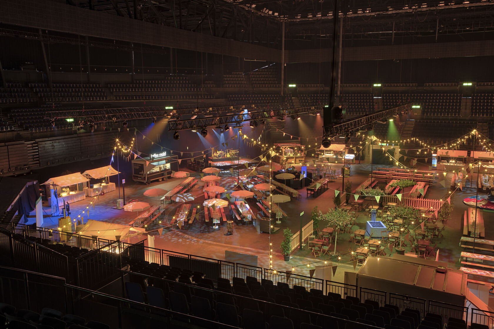 Im Street Food Style verwandelt sich die Arena in einen lebendigen Marktplatz voller Düfte, Farben und Begegnungen. Locker, ungezwungen und vielseitig – ideal für Apéros, Networking-Events oder kulinarische Erlebniswelten. Die offene Fläche schafft Nähe, das Ambiente sorgt für Gesprächsstoff.